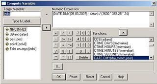 Per calcular l'edat, el què hem de fer és restar-li a la data d'avui la data de naixement. Amb això ens dóna la data, però en segons. Per tant, hem de convertir l'edat en egons a edat en anys, multiplicant per (3600 min)*(365.25 dies)*(24 hores).